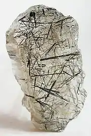 Прозрачный бесцветный кварц, содержащий тонкие игольчатые кристаллы чёрного турмалина, называется турмалиновым кварцем. Встречаются образцы, в которых черные иголки турмалина образуют внутри кварца причудливые узоры.
