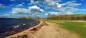 Растительность прибрежной полосы представлена в основном различными видами ив, берёзой, клёном, ивой, тополем. Кустарники наиболее разнообразно и обильно представлены в районе восточного берега (местами плотно — шиповник, ива, бузина чёрная и акация — разбросано).