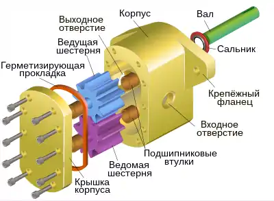 - высокое требование к точности изготовления шестерен и пластин, образующих корпус;