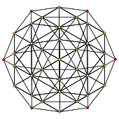 - координаты остальных 96 вершин были всевозможными чётными перестановками чисел где — отношение золотого сечения (эти вершины расположены так же, как вершины курносого двадцатичетырёхячейника).