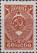 Герб СССР, красновато-коричневая[Комм 6][4][5][9][11]. | 0,60 | 15 марта 1943 года |