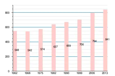 | 1962 | 1968 | 1975 | 1982 | 1990 | 1999 | 2006 | 2008 | 2011 | 2012 | 2013 |