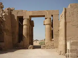 Завладев после похода несметными сокровищами, Шешонк приступил к бурной строительной деятельности, которой страна не помнила уже 200 лет и которая должна была прославить его имя в веках. Он роскошно украсил храмами свою резиденцию Бубастис и значительно расширил Карнакский храм в Фивах, в котором построил пилон. Это и был — и до сих пор остаётся величайший из существующих храмовых дворов, он имеет в ширину более 96 метров, в глубину — 82 метра и ограничен высочайшим в Египте пилоном толщиной в 11 метров, высотой в 46 и с верхней поверхностью в 33 м². Шешонк предполагал отпраздновать там свой тридцатилетний юбилей. Его сын Иуапет — верховный жрец Амона — послал в Сильсиле экспедицию за камнем для огромного двора и пилона, которым предполагалось дополнить Карнакский храм с запада (надпись от II месяца сезона Шему 21 года правления Шешонка I).