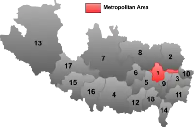| 12 | Уезд | Динггье | 定结县 | Dìngjié xiàn | གདིང་སྐྱེས་རྫོང་ | gding skyes rdzong | 20 000 | 5816 | 3 |