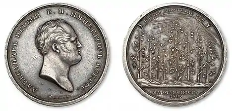 Получил звание академика (1810) за медаль, поднесённую от дворян Санкт-Петербургской губернии графу Строганову.