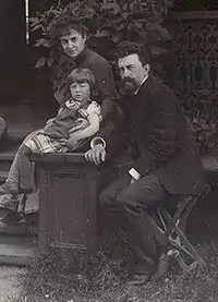 ![]() Н. А. Шильдкнехт с женой и старшим сыном на даче в Териоки (1895) | |