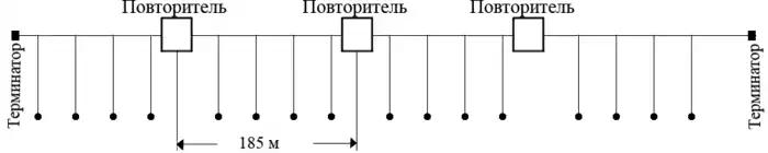 При построении больших сетей возникает проблема ограничения на длину линии связи между узлами, — в таком случае сеть разбивают на сегменты. Сегменты соединяются различными устройствами — повторителями, концентраторами или хабами.