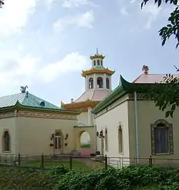 Одним из ярчайших образцов «чайного домика» является павильон в Сан-Суси, резиденции Фридриха Великого (архитектор И. Г. Бюринг, скульптор И. П. Бенкерт). Круглый в плане, китайский домик «населён» позолоченными «китайцами». Они встречают посетителя прямо у входа, как бы приглашая выпить с ними чаю. Изваяния выполнены в полный рост, одеты в фантазийную восточную одежду, но имеют европейские черты лица. «Китайцы» живут своей «жизнью» — входящий застаёт их во время трапезы. Внутреннее пространство павильона также изобилует сценами из восточной жизни — живописные композиции украшают стены и потолок. Полнотелые и массивные «китаянки» больше напоминают французских придворных дам, нежели стройных китайских танцовщиц.