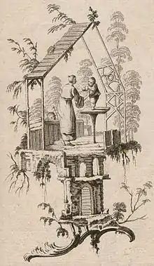 «Китайский стиль», или, по-французски, шинуазри, получил своё развитие, как «ветвь» стиля рококо. Художники, работавшие в этом направлении, создавали изящные и несерьёзные пасторальные картины. Персонажами подобных «китайских» сюжетов были императоры, их наложницы, танцоры и воины.