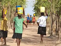 Воду из источника носят традиционным способом.