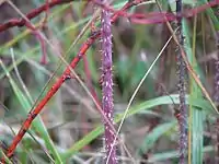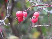 Слева направо: цветок, плоды, плоды крупным планом, шипы на нижней части побега | ||||||||||