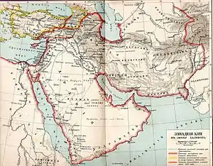 В 654 году Ширван был занят арабами и позднее стал наследственным владением арабских наместников[10]. С середины VIII века Ширван и Дагестан становятся ареной кровопролитных сражений между хазарами и армией арабских халифов династии Омейядов[11].