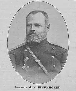 Ширинский Михаил Иванович (10 мая 1854 — 1918?) — генерал-майор, кавалер ордена Святого Георгия IV степени за оборону европейских концессий Тяньцзиня. Участник русско-турецкой войны 1877—1878 годов, военных действий в Китае 1900—1901 годов.