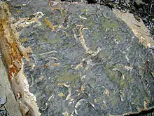 В геологическом отношении район полуострова Абрау образован осадочными отложениями мелового и палеогенового периодов. Видимый на обрывах срез горных пород представлен параллельными слоями серых мелкозернистых песчаников, мергеля, алевролитов, глинистых сланцев и темно-серых алевролитовых известняков. Мергель, ограниченный твердыми, не пропускающими воду породами, при контакте с влагой трескается, рассыпается на мелкие зерна, создавая вперемешку с включениями глины — рыхлые слои, способные аккумулировать большое количество воды во время дождей. По этой причине, даже при многомесячной засухе, в горах текут ручьи и лес имеет свежую зелень.