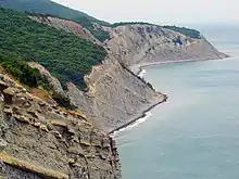 Пляж «Лукоморье», расположенный в направлении к селу Мысхако, более приспособлен для детского отдыха, здесь находится детский оздоровительный лагерь. Ширина пляжа около 20 метров, при длина в 900 метров. Над пляжем возвышаются обрывы, в нижнем ярусе которых часто встречаются плиты с гиероглифами Под редакцией К. Н. Паффенгольца и др. Гиероглифы // Геологический словарь: в 2-х томах. — М.: Недра. — 1978. — напластованиями в виде различных кривых линий, похожими на древнюю восточную письменность. Однако эти гиероглифы имеют естественное происхождение. За ним, вплоть до Мысхако, идет череда диких пляжей, с многочисленными местами для палаток на обрывах.