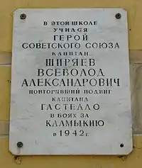 - В Астрахани есть улица Ширяева, на одном из домов улицы установлена мемориальная доска.