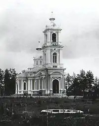 - Церковь Серафима Саровского (1906—1908, не сохр.) в Серафимо-Антониевском скиту Александро-Невской Лавры около станции Преображенская (ныне пос. Толмачёво)[19][к 2];