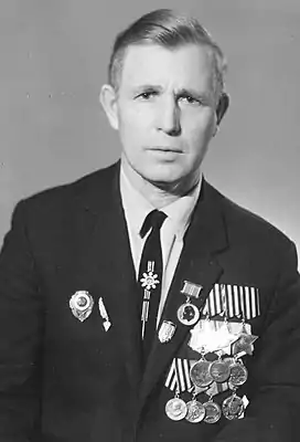 Полный кавалер ордена Славы, награждён медалями «За отвагу», «За боевые заслуги», «За оборону Ленинграда», «За освобождение Праги», «За победу над Германией». Герой документального фильма "Всего один день", производство Творческого объединения «Экран», 1974 год,режиссер Ксения Шергова