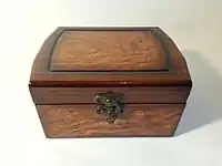 Шкату́лка (устар. ларе́ц, ла́рчик, бау́льчик, укла́дочка[1]) — маленькая коробка или ящик, обычно, но не всегда, в форме прямоугольного параллелепипеда[2], используемая для хранения драгоценностей, денег, бумаг и других мелких, но обычно ценных предметов.[2][3][4] Шкатулки появились в глубокой древности и ведут происхождение, вероятно, от сундуков для хранения одежды.[3]