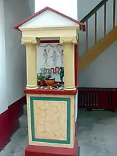 У развитых цивилизаций Востока, предположительно, ящик с крышкой переняли и хорошо освоили жители Древней Греции и Рима, и передали его впоследствии всем остальным народам Европы[6]. Однако римляне изобрели при этом ещё один вид «протошкафа» — «armarium» (от лат. arma — оружие). Как понятно из названия, первоначально это было место для хранения в доме оружия и место это, как связанное с тайной жизни и смерти, было сакральным. Другое сакральное место, где хранились особо почитаемые римлянами изображения богов-покровителей домашнего очага — лары и пенаты — называлось «ларарий» (лат. lararium). Ларарий тоже напоминает «протошкаф», он представлял собой или нишу в стене, часто с дверцами, которые открывались во время трапез и празднеств, или небольшой шкафчик, имитирующий своей формой храм[7]. В ларарии хранились не только изображения богов, но и прочие сакральные предметы, к примеру, пучки волос, состриженные во время посвящения юношей в мужчины или детские куклы девушек, выданных замуж.