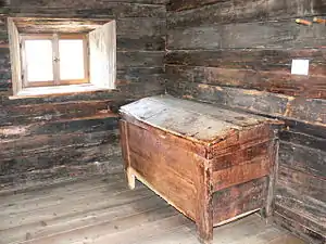 Казёнка предназначалась для хранения казны, то есть посуды и других дорогих вещей. Казёнка наглухо крепилась к стене.