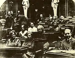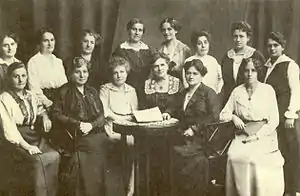 ![]() Тереза Шлезингер сидит третья слева. Комитет Frauenreichskomitee, 1917 год. | |