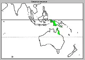 Обитает во влажных лесах Новой Гвинеи, на индонезийских островах Серам и Ару, а также в северо-восточной части Австралии. Этот вид предпочитает высоту до 1100 м (в Австралии) и до 500 м (в Новой Гвинее).