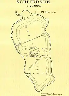 Батиметрическая карта озера Шлирзе 1885 года. Масштаб: 1:25 000