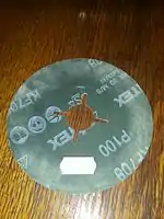 - УШМ, дрели с использованием дополнительной оснастки — опорной тарелки, имеющей липучую поверхность или зажимную шайбу (листы круглой формы крепятся, соответственно, на липучке или имеют посередине отверстие, такие листы не имеют отверстия для пылеотвода)
