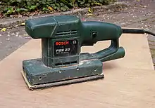 Другое название — плоскошлифовальная машина. Рабочим узлом этого инструмента является прямоугольная подошва, на которой закрепляется лист шлифовальной шкурки. Шлифование и полирование осуществляются путём быстрых возвратно-поступательных движений подошвы (порядка 20 000 колебаний в минуту (333,(3) Гц) с амплитудой около 2 мм). Наиболее распространены два способа крепления наждачной бумаги: