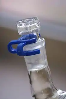 Для разборки заклинившего шлифа можно влить в соединение какую-либо проникающую жидкость, осторожно постучать по шлифу деревянным брусочком или нагреть муфту над коптящим пламенем, чтобы тепловое расширение освободило керн. Заевший кран можно освободить, выдавливая керн при помощи тисков или постукиванием, и этот способ предпочтительнее нагревания[8].