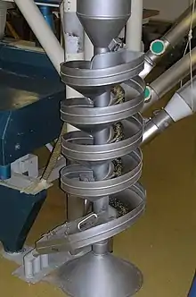 - Вашгерд — это обычная наклонная доска, или несколько хорошо пригнанных друг к другу досок с бортиками по краям, (сточный жёлоб), иногда, для гладкости, застилаемые линолеумом. Вашгерд устанавливается с наклоном 0, 01 — 0, 04. В головной части этого лотка располагаются две деревянные перегородки для распределения воды тонким слоем по наклонной поверхности. Обогащение на вашгерде происходит за счёт перераспределения поставляемого обломочного материала вниз по лотку, где концентрируется тяжёлая фракция. Обломочный материал от промывочного прибора подаётся порциями около 50 кг. Доводка концентрата доводится вручную в шлиховых лотках. Весьма древний способ, широко, однако, применяемый, в частности, в России.