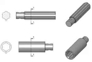 Сечение шлицевого вала и втулки с прямобочным профилем.