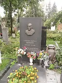 Похоронен в Москве на Новодевичьем кладбище (участок № 1).