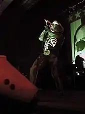 Пионером этого направления считается Скримин Джей Хокинс, ещё в 50-х годах эпатировавший публику необычными костюмами и манерой исполнения[1]. Элис Купер, прозванный «королём ужаса», устраивал на своих концертах представление, в котором «поедал» бутафорских животных, позволял вешать себя, отрубать себе голову, и т. п. К некоторым из этих трюков прибегал в то же время и Оззи Осборн. Группа The Misfits основала направление хоррор-панк, посвящённое ужастикам.