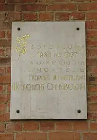 Гео́ргий Фили́ппович Шо́лохов-Синя́вский (настоящая фамилия — Шолохов; 29 октября [11 ноября] 1901, с. Синявское, Область Войска Донского[1] — 1 мая 1967, Москва) — русский советский писатель и журналист, военный корреспондент. Один из зачинателей советской литературы на Дону.