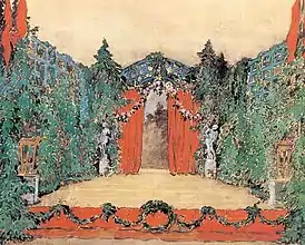 ![]() А. Бенуа. Эскиз декорации для балета «Сильфиды», 1909. | |