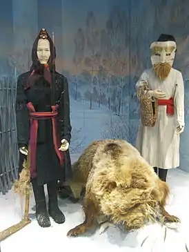 ![]() Ряженые: Васли Кугыза, Васли Кува и Маска. Экспозиция НМ РМЭ | |
