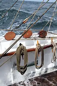 На парусных судах шпигаты, расположенные в фальшбортах, часто применяются для проводки снастей бегучего такелажа.