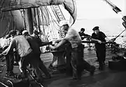 Шпиль (от нидерл. spijl[1] — «якорный ворот») — механизм на торговом судне (или военном корабле) типа ворот с вертикальной осью вращения; служит для вытягивания якорной цепи из воды[2]. Так же шпиль используют для швартовных операций, выбирания троса, перемещения груза, выборки тралов, рыболовных сетей и прочего.[2] Иногда используют в значении кабеста́н.