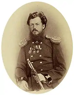 ![]() Штабс-капитан Е. В. Шпицберг. Фотография 1872 года. | |