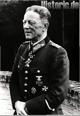 Потом он подло был расстрелян по приказу Гиммлера после 20 июля 1944 г.,[]. Все мы, кто его знал, будем с уважением хранить память о нём, как о честном солдате и о командире, исполненном высокого чувства ответственности.