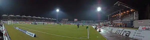 Стадион в феврале 2008 года (тогда носил название Playmobil-Stadion). Панорамный вид.