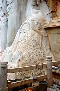 «Стопы Бхадрабаху» в пещере на холме Чандрагири, в которой этот джайнский святой совершал аскезы и добровольно принял смерть в результате сантхары — ритуальной смерти от продолжительного поста.