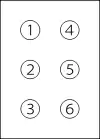 Для читающего точки нумеруются по столбцам слева направо и по строкам сверху вниз. Для пишущего на перевёрнутой странице нумерация выглядит по-иному: точка 1 находится в верхнем правом углу, под ней — точка 2, в нижнем левом углу — точка 6.