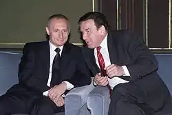 Ге́рхард Фриц Курт Шрёдер (нем. Gerhard Fritz Kurt Schröder; род. 7 апреля 1944, Моссенберг-Вёрен) — немецкий государственный деятель и политик. Федеральный канцлер ФРГ с 27 октября 1998 по 21 ноября 2005. Председатель Совета директоров компании ПАО «НК «Роснефть» с 29 сентября 2017 года. Иностранный член Российской академии наук (2008). Почётный доктор наук Санкт-Петербургского университета[4].