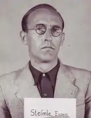 Ойген Карл Штаймле, (нем. Eugen Karl Steimle; 8 декабря 1909, Нойбулах — 6 октября 1987, Равенсбург) — немец, член нацистской партии, в рядах СС дослужился до звания — штандартенфюрер. Командир Зондеркоманды 7a (Айнзацгруппа «B») и Зондеркоманды 4a (Айнзацгруппа «C»)[1]. На Нюрнбергском процессе по делу об айнзацгруппах был признан военным преступником и приговорён к смертной казни через повешение, но позже она была заменена двадцатилетним заключением[2].