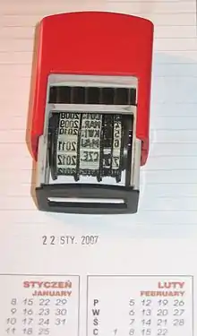 Штамп — ручной инструмент, изготовленный из различных видов материалов, способный выполнять функцию фиксирования события в виде оттиска или переноса красителя на различные материалы: глина, металл, воск, сургуч, кожа, бумага, а также тесто.