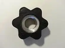 - замки-гайки для втулок 25 мм, 35 мм и 50 мм. Гайки для штанги со втулкой 25 мм не учитываются в массе, гайки для втулок 35 и 50 мм используются в разборных гантелях.