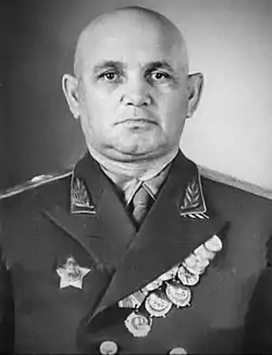 В 1944−1945 годах — заместитель командира 62-го Неманского стрелкового корпуса на 1-м и 2-м Прибалтийском и 1-м Белорусском фронтах.[4]